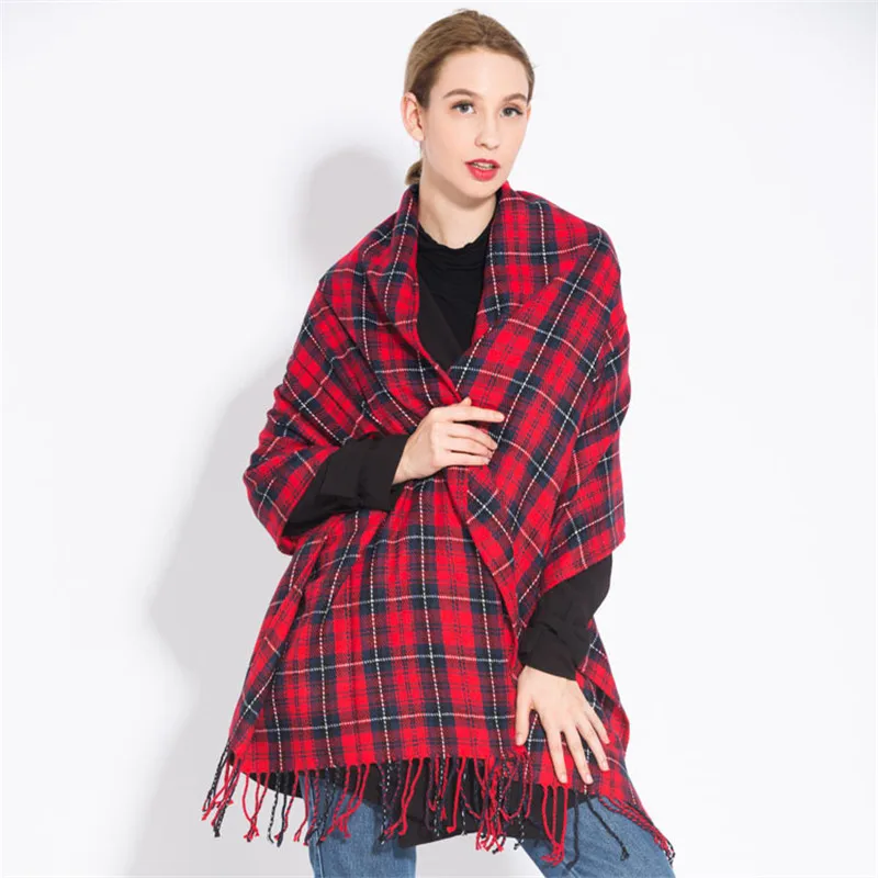Модные теплые клетчатые кашемировые шарфы для женщин, зимний шарф, роскошная брендовая шаль, Дамская элегантная шаль из пашмины, женские ша...