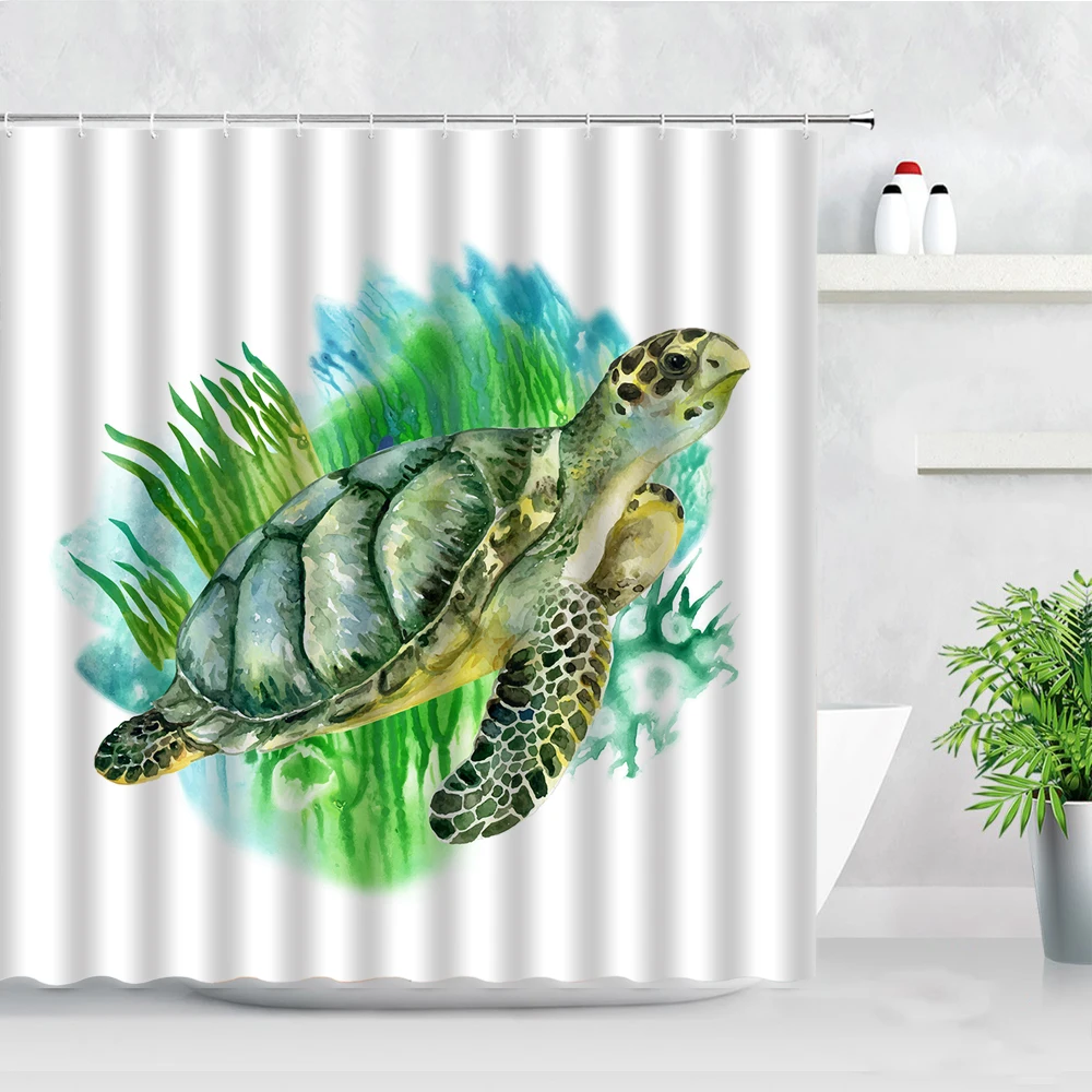 Творческий ручная роспись морская черепаха детский набор для ванной комнаты шторы Водонепроницаемый ткани с рисунками зверей из мультфиль...