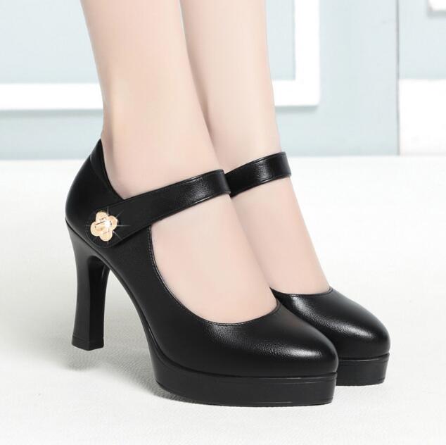 Модные туфли-лодочки на платформе с блочным каблуком Весна Осень Женская обувь 2025 Женские туфли на высоком каблуке с ремешком и пряжкой Элегантные черные офисные туфли для леди 42