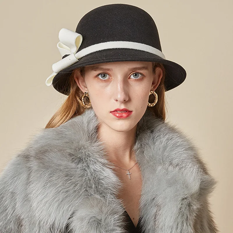 Модные цветочные фетровые шляпы Fedora, роскошные вечерние фетровые шляпы для зимы и осени, теплые элегантные шерстяные шапки в стиле ретро в б...