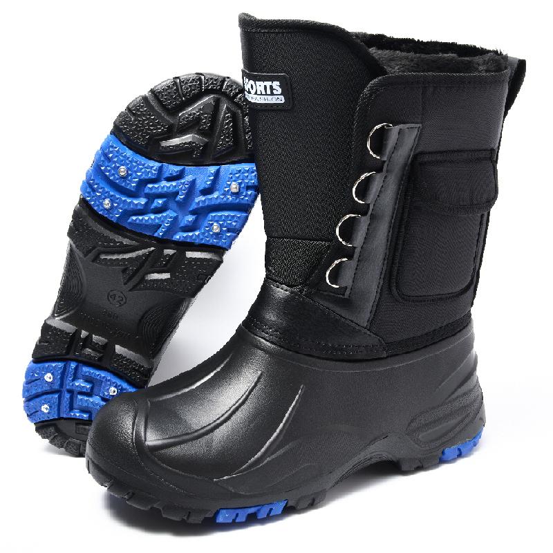 Модные черные мужские уличные ботинки, водонепроницаемые ботинки для мужчин, нескользящая подошва с шипами, износостойкие зимние ботинки, теплые плюшевые ботинки для рыбалки 46 чёрный