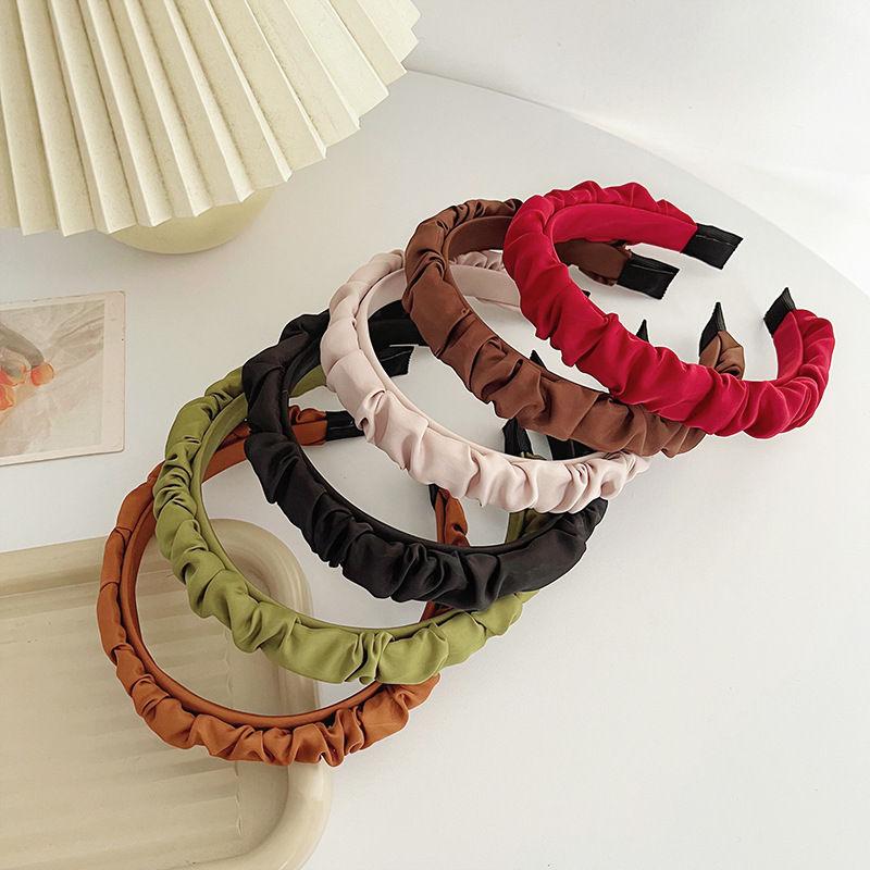 Модные шелковистые простые изящные аксессуары, цветная заколка для волос, однотонная повязка на голову, атласная плиссированная повязка на голову
