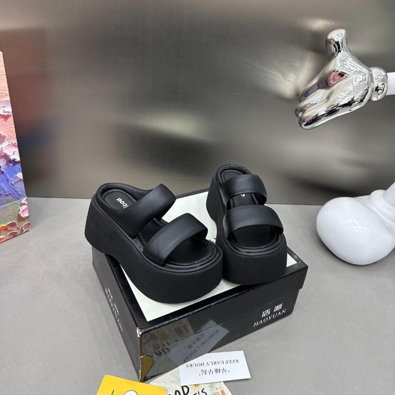 Модные шлепанцы на платформе для женщин на лето, модные новые сандалии на толстой подошве, удобные, повседневные, на высоком каблуке, уличная пляжная обувь, шлепанцы 40 чёрный