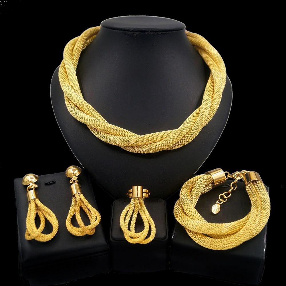 Модные ювелирные изделия из цинкового сплава, инкрустированные Роной, ожерелье, браслет, серьги из четырех частей, женские