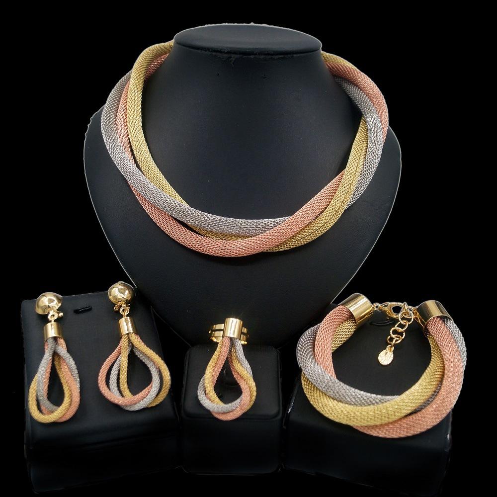 Модные ювелирные изделия из цинкового сплава, инкрустированные Роной, ожерелье, браслет, серьги из четырех частей, женские