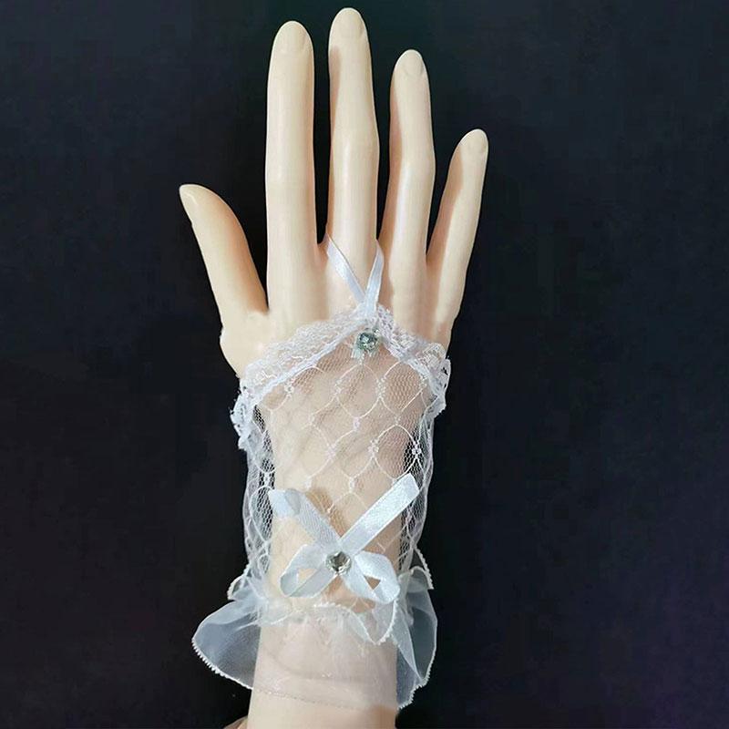 Модные 1 пара кружевных перчаток без пальцев Лолита Прозрачные с бантом Свадебные Вечерние Однотонные Короткие Винтажные Мягкие Женские