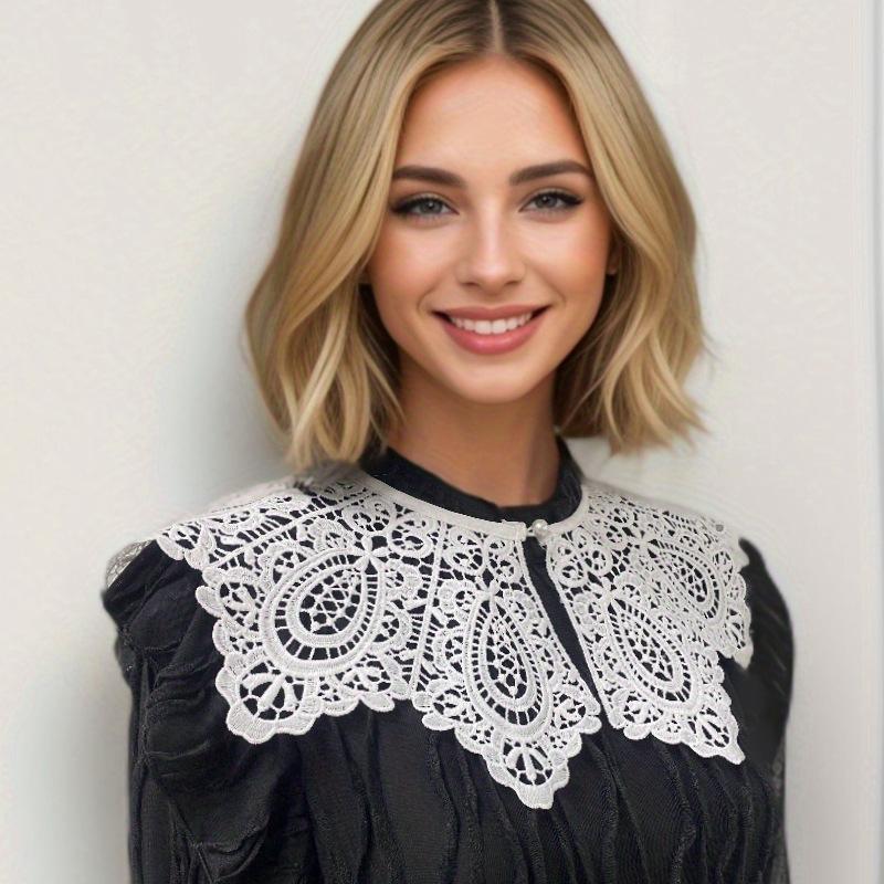 Модный белый кружевной платок-шаль на плечи, декоративный сказочный с полым узором, имитация воротника, вышивка, ожерелье, съемная накидка