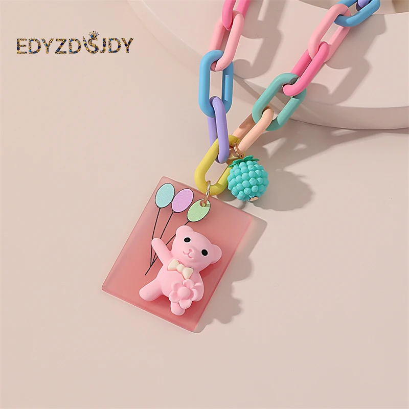 New Arrival Women Candy Colors Hand Knitted The Chain Necklace Pink Bear Pendant Cute Girl’s Clavicle Chain Jewelry Gift