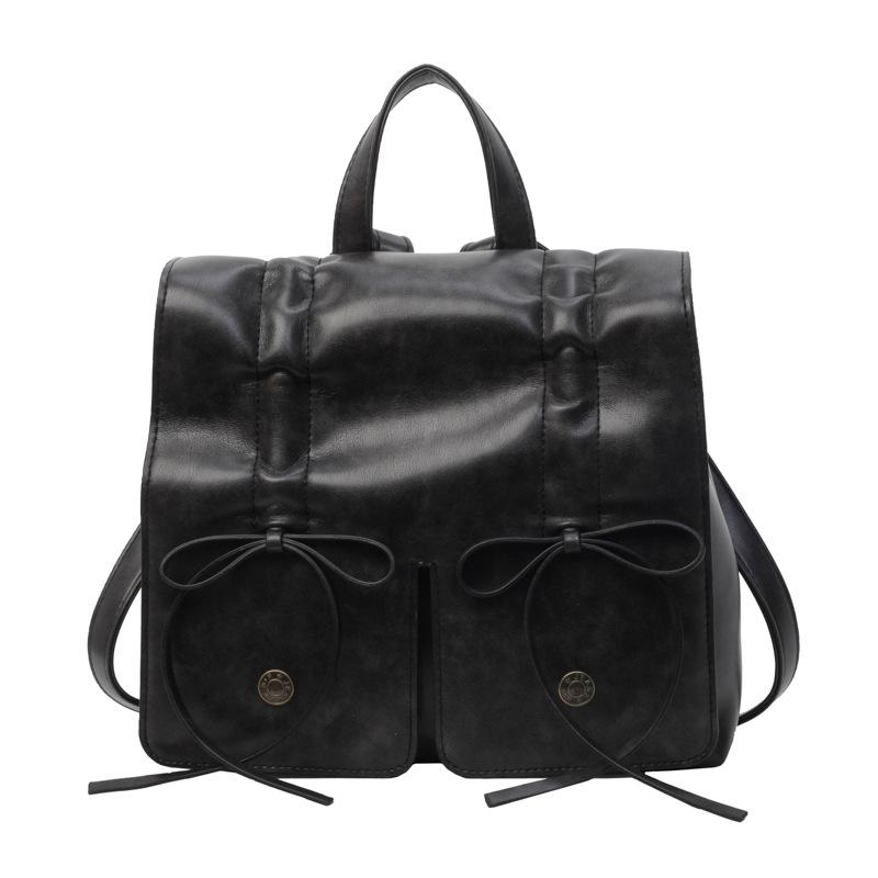 Модный кожаный рюкзак с бантом, весна 2024: Универсальная, Вместительная, Милая Сумка чёрный
