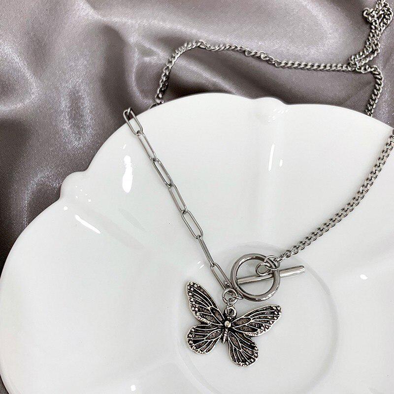 Модный популярный браслет с пряжкой в форме бабочки, древнее серебро, ретро-стиль, ожерелье с подвеской на ключице