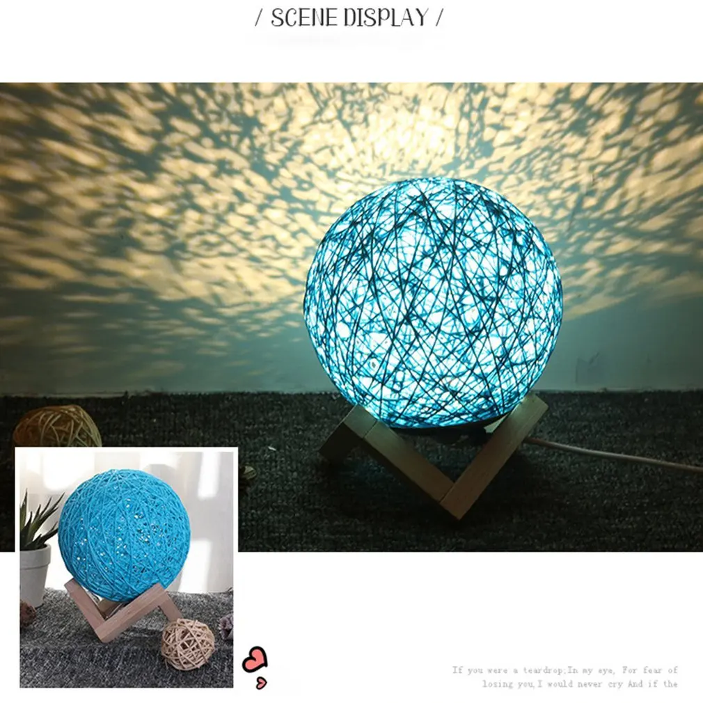 Модный ротанговый шар, ночник с USB-зарядкой, романтическая ночная лампа с деревянной основой, домашний декор, лампа для спальни вечерние рин...