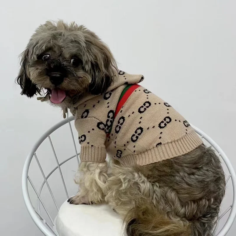 Модный свитер с буквой C Одежда для собак полосатая трикотажная одежда для собак теплая кавайная Милая повседневная черная осенне-зимняя Те...