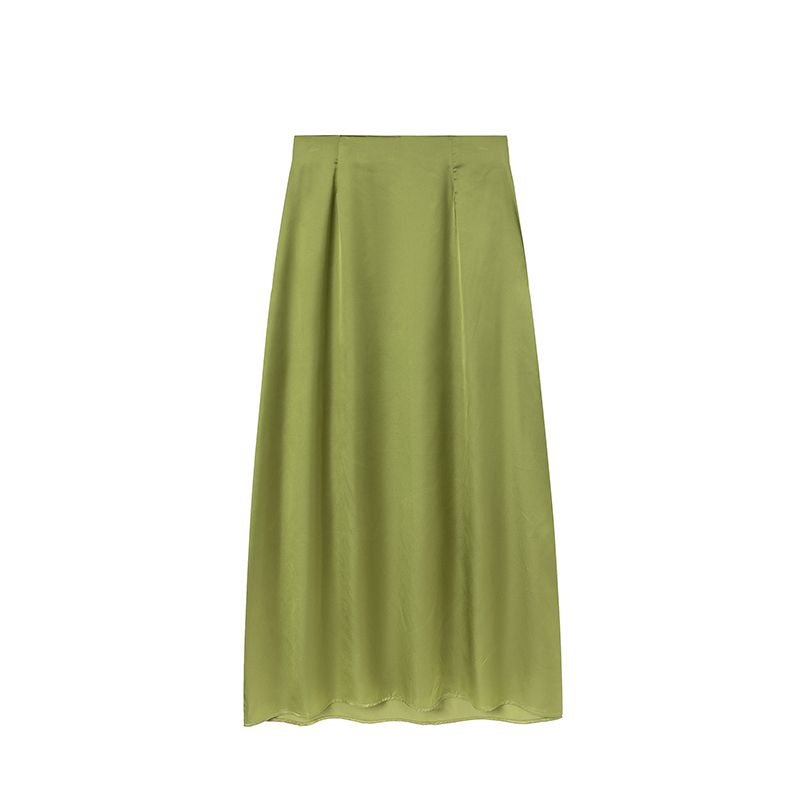 Модный стиль Высокая Летняя Атласная Атласная Повседневная Юбка Интеллектуальная Нежная Минималистичная Длинная Юбка Шелковистая Женская Мода Green S