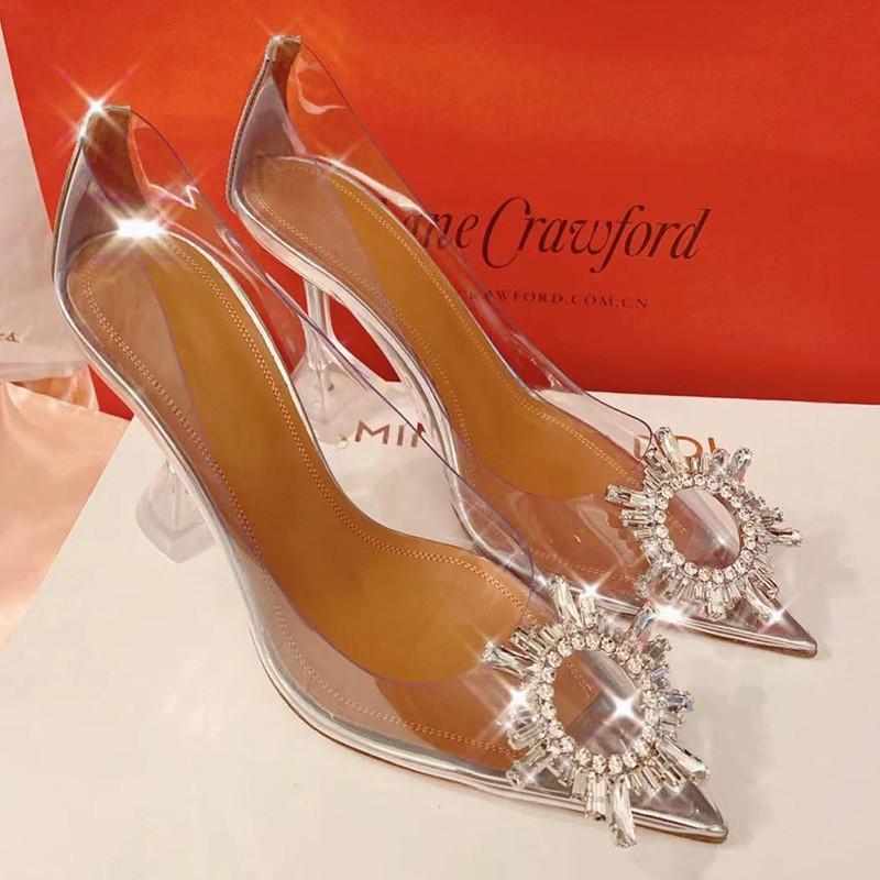 Модный стиль звезды Кристальные Прозрачные ПВХ Женские Туфли-лодочки Роскошные Стразы Высокий каблук Свадебная Обувь Летняя Вечеринка Выпускной Обувь 35 прозрачный