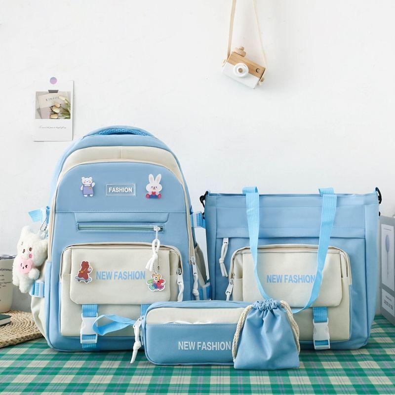Модный студенческий набор из 4 предметов Рюкзак для начальной школы Рюкзак для студентов колледжа большой вместимости прочный Сумка для ручек, рюкзак as the picture