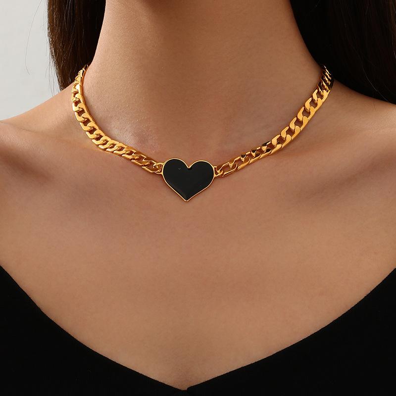 Модный темперамент Универсальный стиль Металлическая цепочка Красная любовь Персиковое сердце женская подвеска Ожерелье Толстая цепочка чёрный