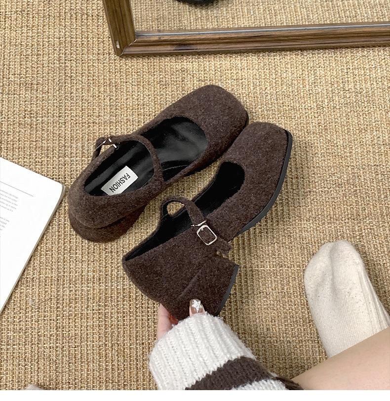 Модный темперамент французский маленький ароматный стиль толстый каблук толстая подошва пушистая обувь женская 2025 новая зимняя обувь для увеличения роста Мэри Джейн одиночные туфли 37 коричневый
