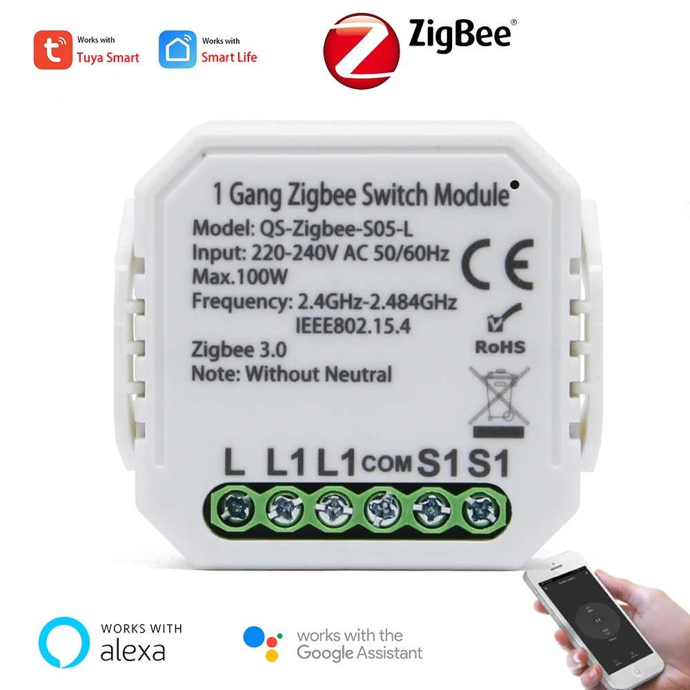 Модуль интеллектуального переключателя Tuya Zigbee с нейтральной или нейтральной линией прямого эфира, автоматический прерыватель для умного д...