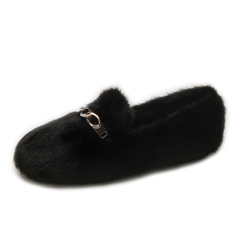 Мокасины из меха норки с металлическими цепями женские противоскользящие резиновые зимние хлопковые туфли 35-43 больших размеров на плоской подошве из меха кролика женские мохнатые мокасины 6.5 чёрный
