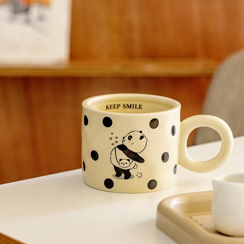 Молоко Fufu Керамическая кружка с крышкой Бытовая чашка для воды Пара чашек Офисная кофейная чашка Ins Милая панда 301-400ml