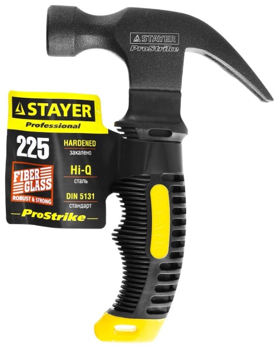 Молоток столярный, рукоять стекловолокно (фиберглас), боек сталь 225 г, STAYER PROFESSIONAL ProStrike Compact (2026-225), ProStrike Compact