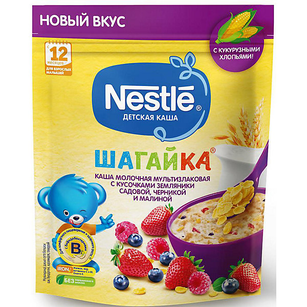 Молочная каша Nestle Шагайка мультизлаковая, земляника, черника, малина, с 12 мес, 190 г