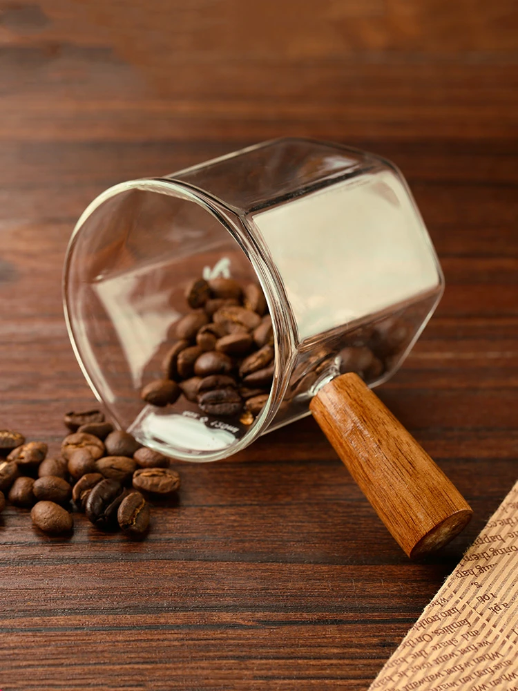 Молочная чашка для кофе с деревянной ручкой, Офисная чашка для извлечения кофе, молочный контейнер, маленькая мерная чашка со шкалой, фотография