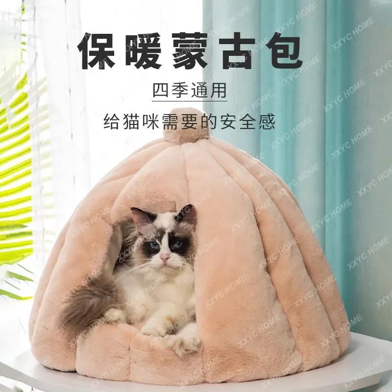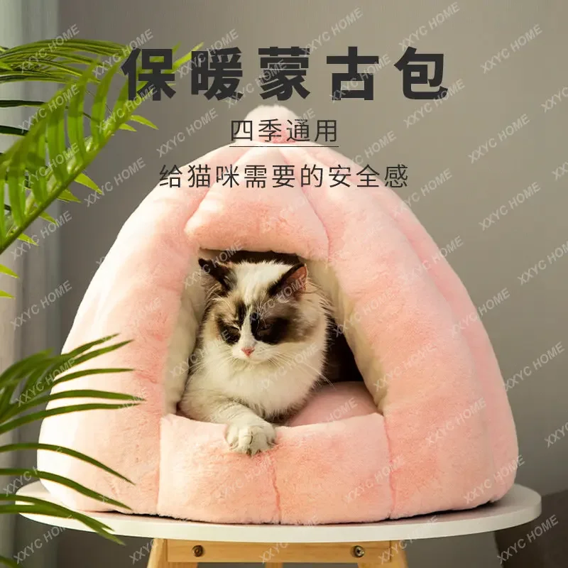 Монгольская сумка, гнездо для кошки, Всесезонная универсальная Закрытая гнездо для кошки, t-домик, зимняя теплая Съемная моющаяся подстилка, коврик, принадлежности