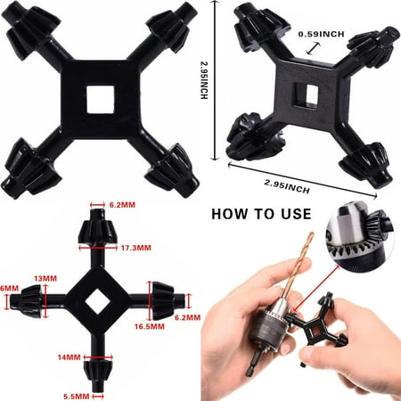 1st Choice 4 in 1 Drill Chuck Key Fit Drill Power Tool Cordless 1/4” 3/8” 1/2” 5/8”