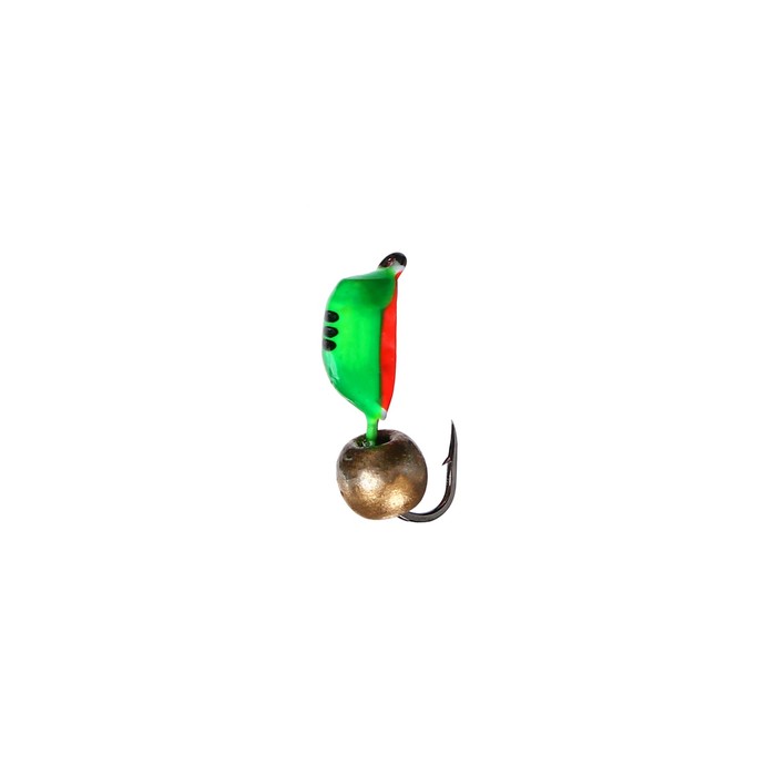 Мормышка Жук зелёный, чёрная полоска, красное брюшко + шар золото бензин, вес 0.9 г