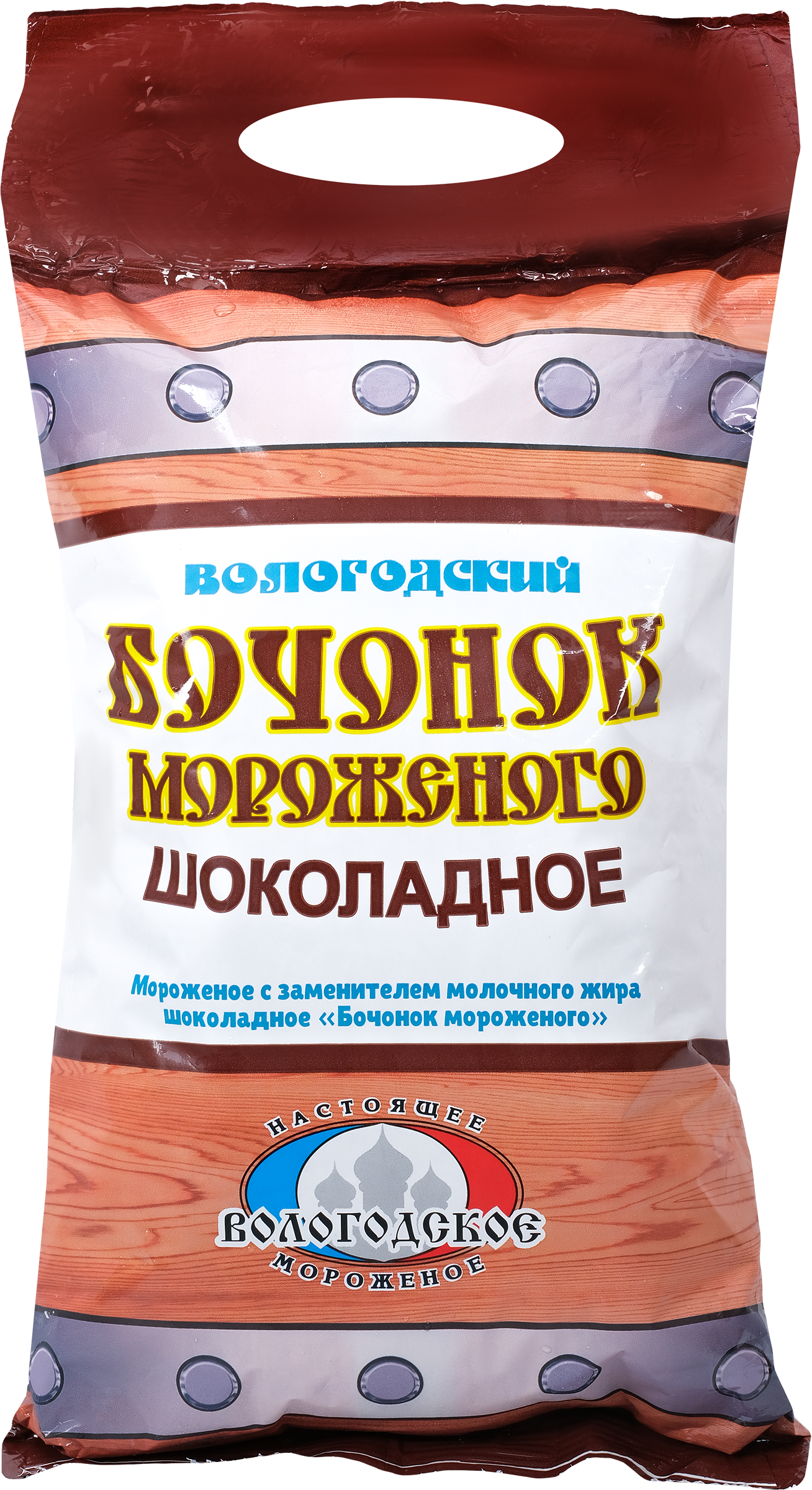 Мороженое Вологодский пломбир Бочонок, шоколадное 12%, с змж, пакет 800 г