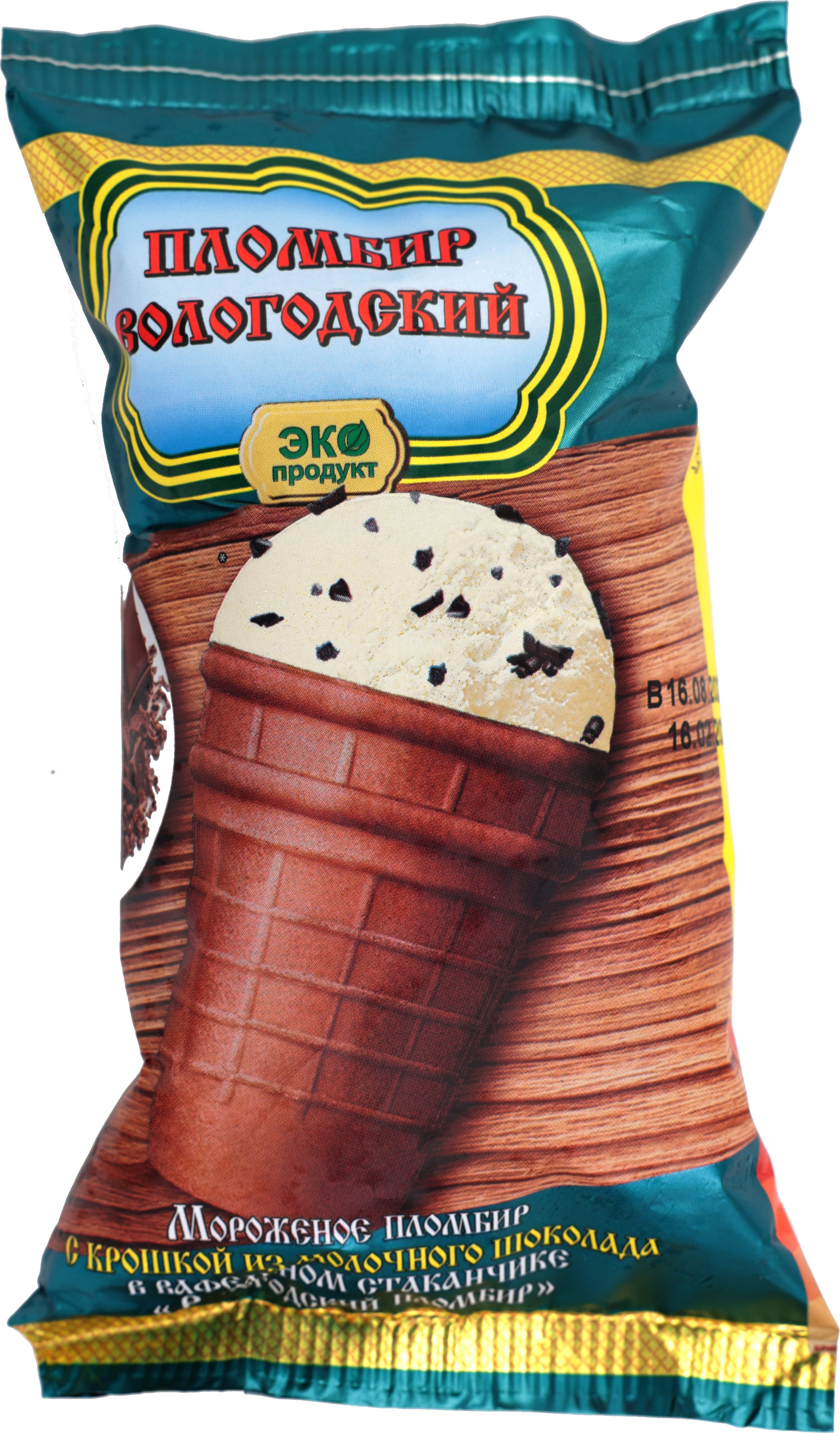 Мороженое Вологодский пломбир с крошкой из молочного шоколада в вафельном стаканчике 15%