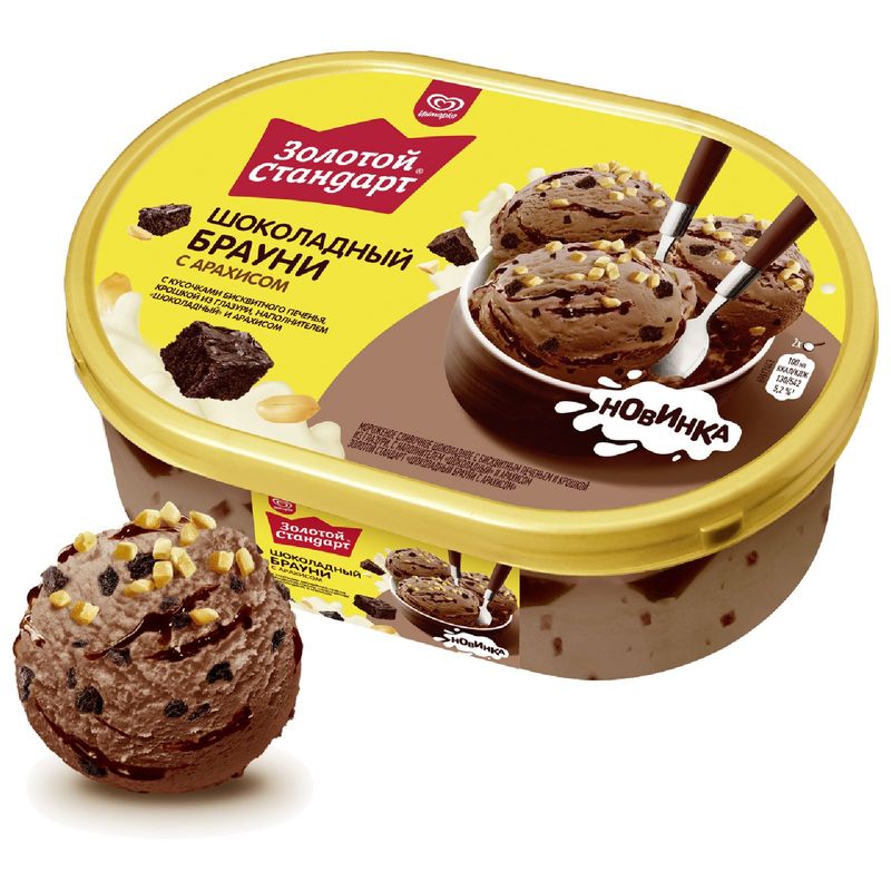 Мороженое Золотой Стандарт сливочное шоколадное Шоколадный брауни с арахисом 445 г