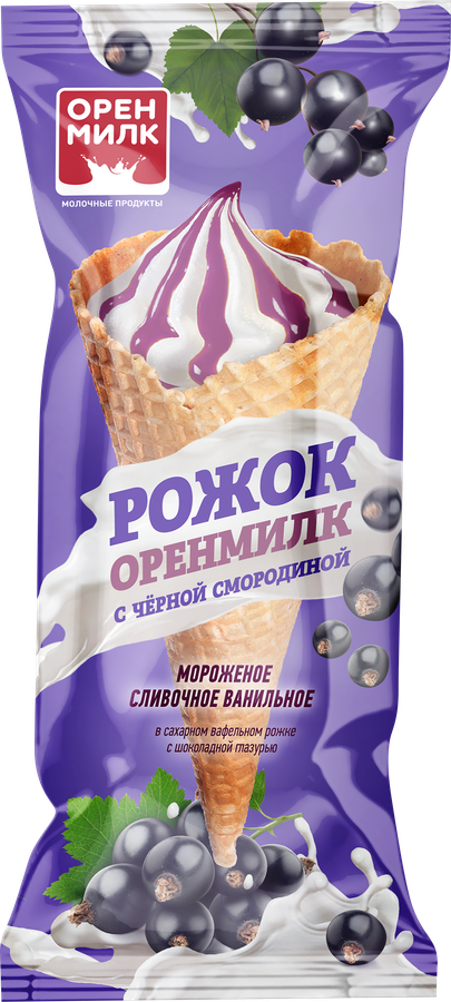 Мороженое Оренмилк Оренмилк, сливочное ванильное с черной смородиной 8%, без змж, вафельный рожок 120 г