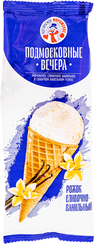 Мороженое ПОДМОСКОВНЫЕ ВЕЧЕРА Сливочно-ванильное 10% без змж вафельный рожок 70 г