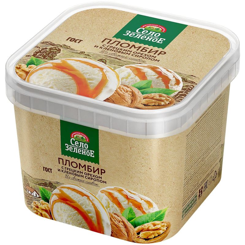 Мороженое пломбир Село Зелёное с грецким орехом и кленовым сиропом, 450 г