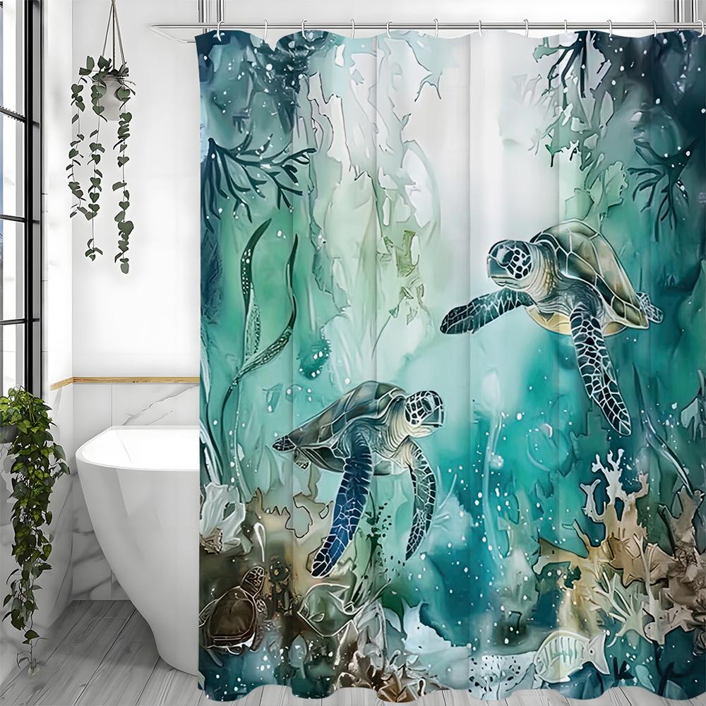 Морская черепаха, светло-зеленый, акварель, шторка для душа, декоративная шторка для ванной, водонепроницаемая шторка для душа с крючками 90*180cm