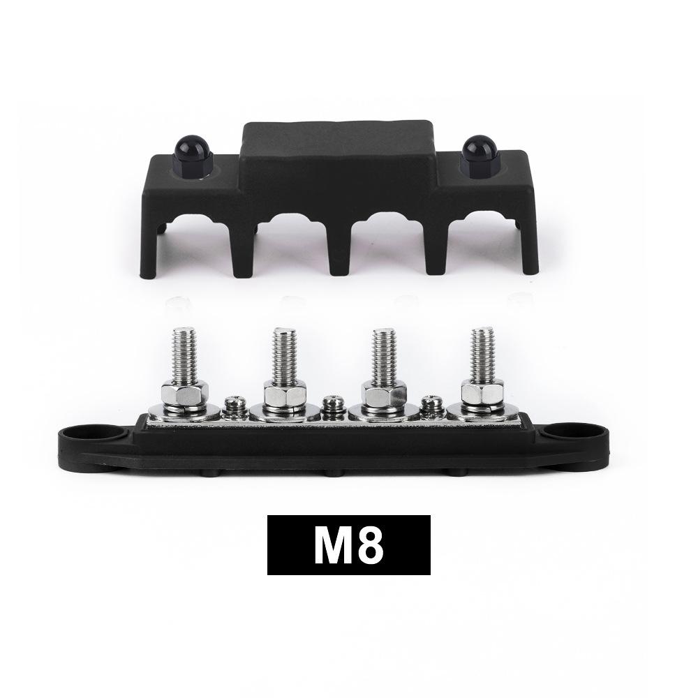 Морская шина 12В 250А Блок распределения питания 4 контакта Распределительная коробка, M8 M10 Автомобильная медная аккумуляторная шина Клеммная колодка