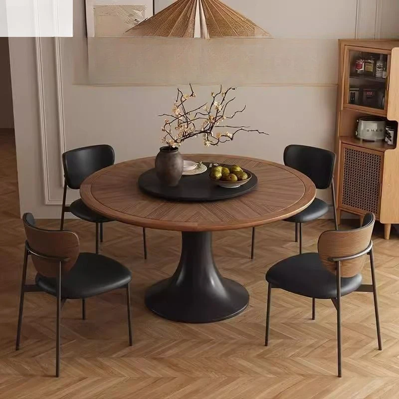 Chinese antique French living room round rice new retro solid wood dining table and chairs simple small apartment