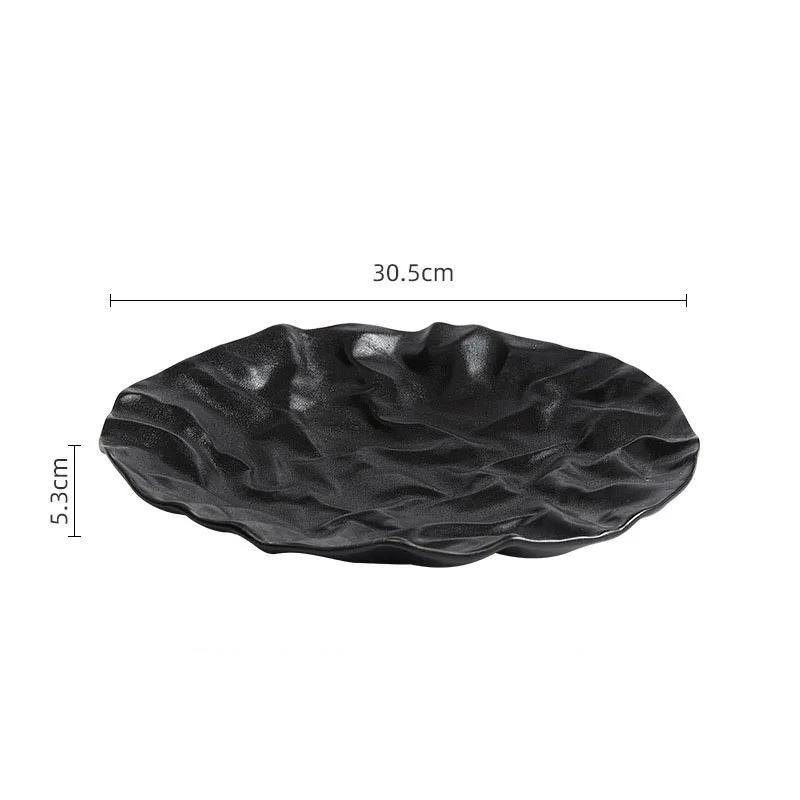 Морщинистая текстура Мелкая тарелка Матовая керамическая столовая посуда Салатная тарелка Десертная тарелка Закусочная тарелка Художественная концепция столовой посуды