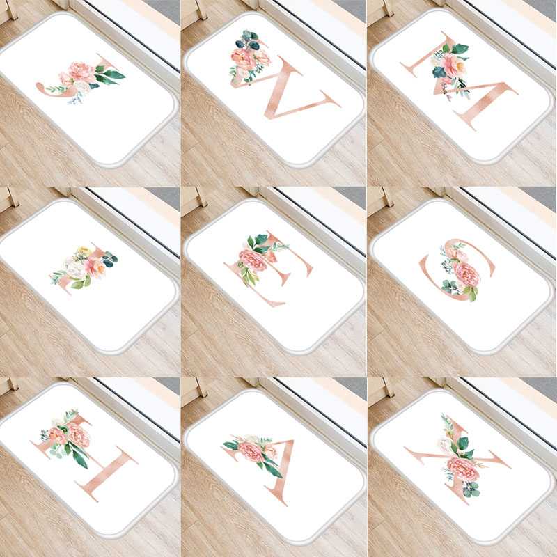 Моющийся коврик для спальни, гостиной, коридора, крыльца, коврик в скандинавском стиле, коврик для двери из розового золота с цветочным принтом и буквами