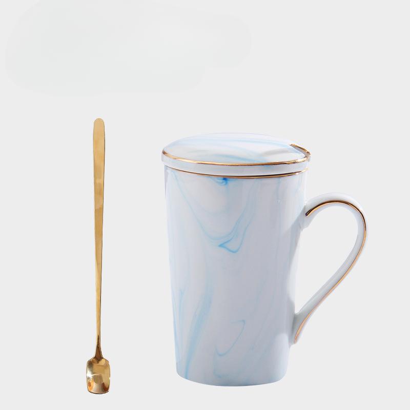 Мраморная кружка с крышкой и ложкой, кружка для самостоятельного помешивания кофе, 12 унций, керамическая кружка из мрамора для кафе или чая на выбор 301-400ml