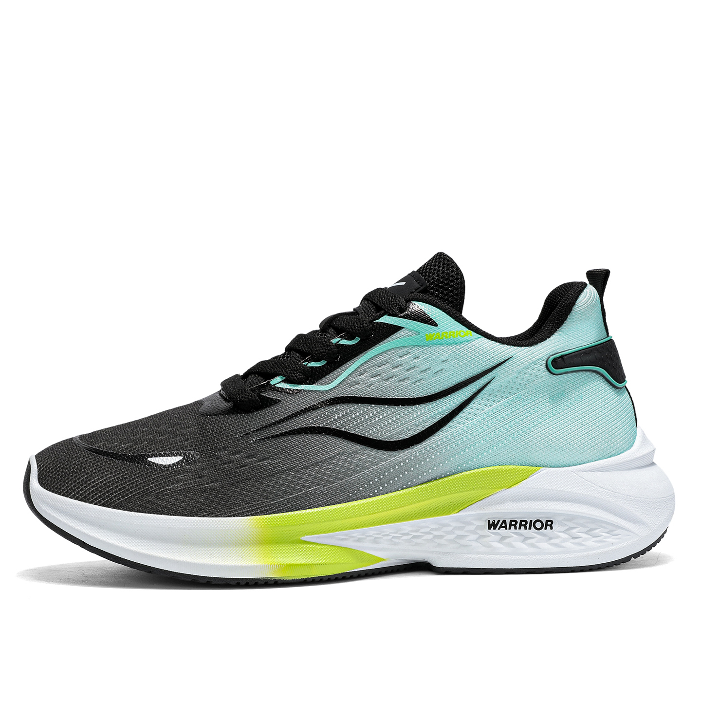 WARRIOR Амортизирующие устойчивые к истиранию дышащие низкие повседневные беговые кроссовки мужские черно-голубые, цвет Black Cyan