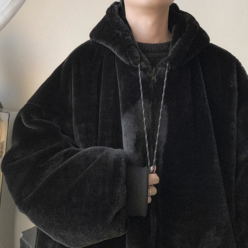 Мужская Зимняя парка с мехом внутри, черная теплая парка большого размера с капюшоном с длинным рукавом, двусторонняя Меховая куртка в Коре...