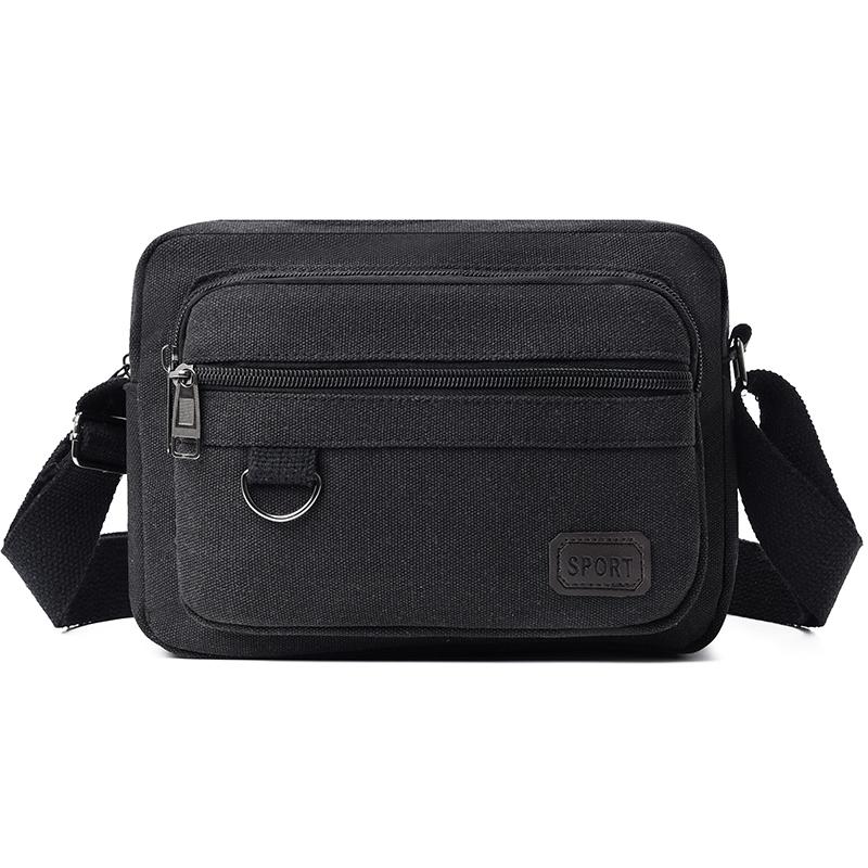 Мужская большая вместительная сумка кроссбоди многослойная парусиновая наплечная сумка чёрный