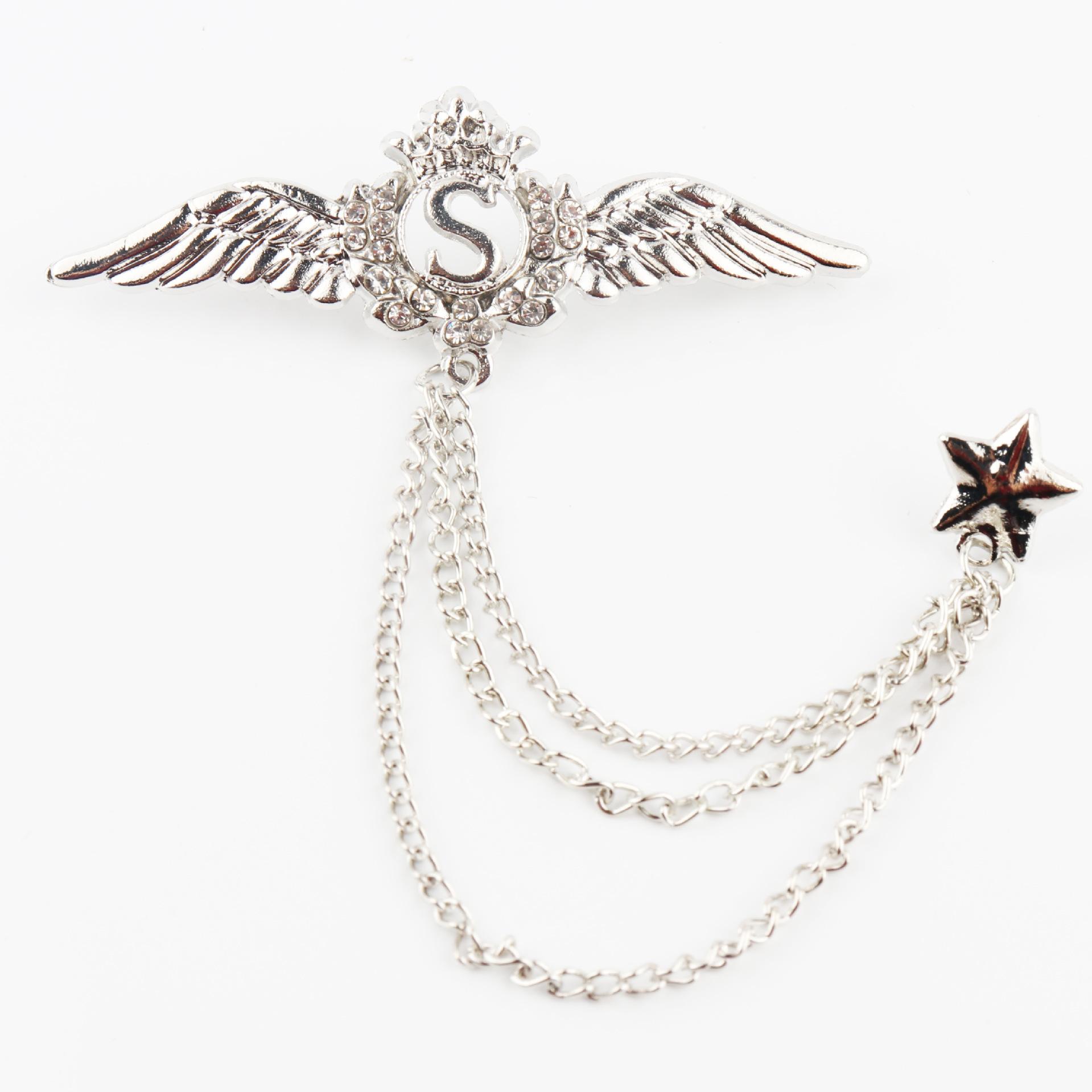 Мужская брошь, именная брошь из сплава с бриллиантами, креативная цепочка с бахромой, брошь в виде аксессуара для мужского костюма серебряный