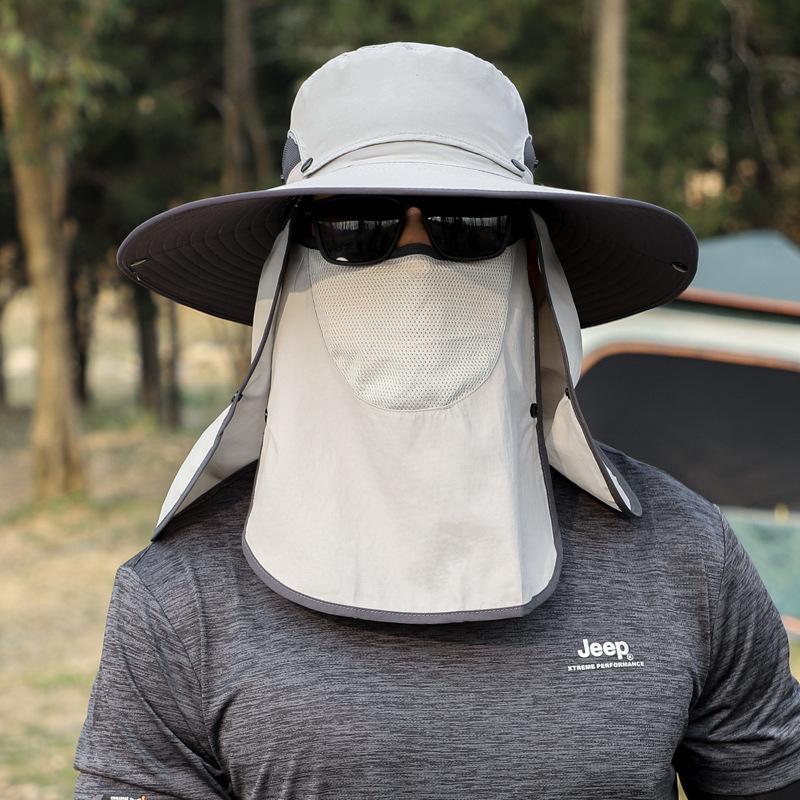 Мужская быстросохнущая шляпа-ведро для рыбалки со съемным клапаном на шее и защитной маской, летняя солнцезащитная кепка с большими полями и съемным верхом шляпы 56-60CM