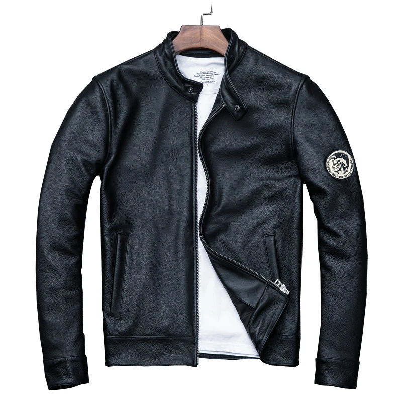 Мужская весенне-осенняя куртка из натуральной воловьей кожи, мотоциклетная Модная приталенная черная кожаная куртка, Женское пальто, разме...