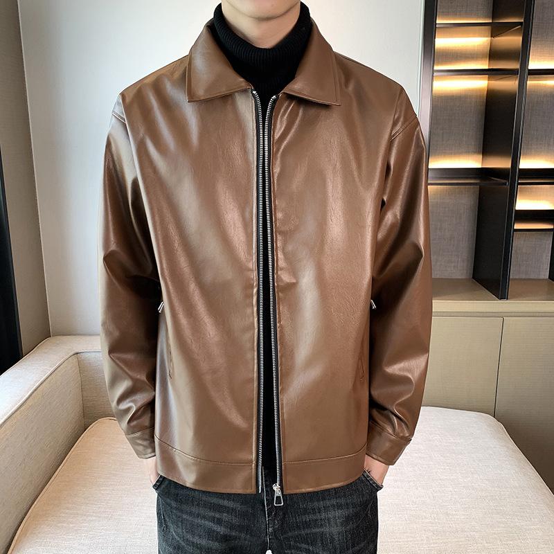 Мужская весенне-осенняя новая кожаная куртка с лацканами, повседневная, модная, байкерская, универсальная, подростковая, в стиле ретро, топ L коричневый