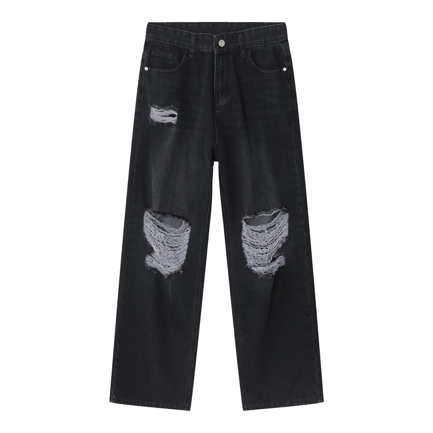 Мужская весенняя новинка, рваная джинсовая ткань, свободная швабра в стиле американского ретро с прямыми штанинами и широкими штанинами S черный серый